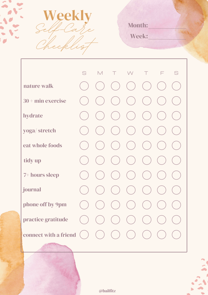 SAVE this weekly self-care checklist below for some self care inspo and accountability!