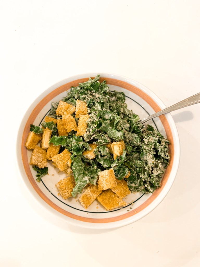 2. Toss the kale with your tahini dressing and top with your tofu.